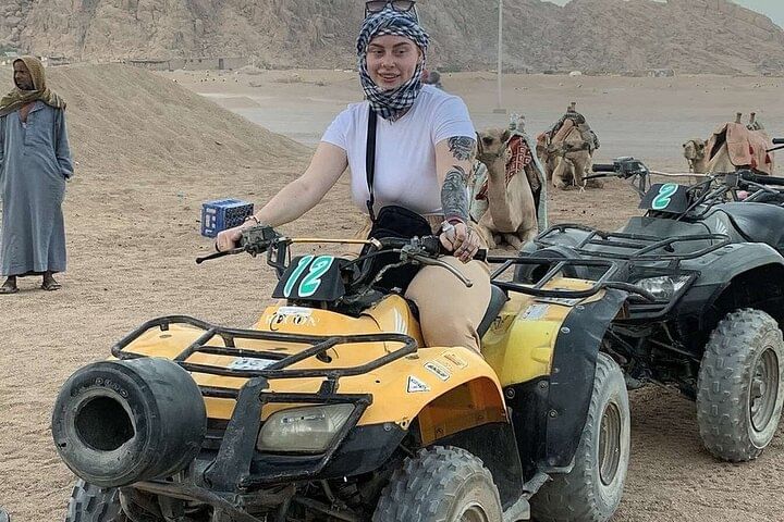 Thrilling Quad Bike Ride: Feel the rush as you navigate 30 km of stunning desert terrain on a powerful quad bike.