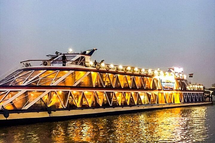 Experience the ultimate Nile River dinner cruise with our exclusive package. Enjoy private transfers, a lavish open buffet, and live entertainment featuring singers, Awan folk show, Tannoura Egyptian Folk Dance Show, and mesmerizing belly dancing. Book now for an unforgettable evening of culture, cuisine, and entertainment on the Nile!