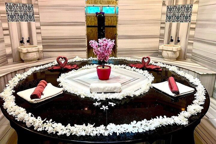 Enjoy a private sauna, Hamam session, jacuzzi, and massage with our VIP Room, complete with fresh fruits, juice, water, and biscuits.