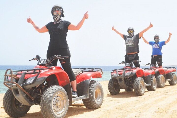 Begin with a convenient hotel pick-up. Enjoy a thrilling 2-hour quad bike ride across stunning desert dunes, followed by a scenic ride along the beautiful Red Sea coastline.