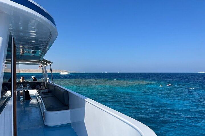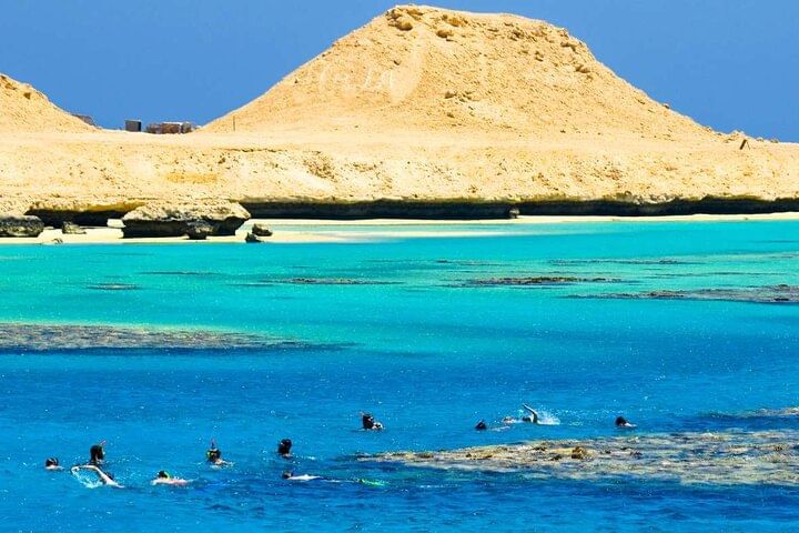 Savor a delicious island buffet featuring fresh seafood, salads, and local delicacies, all while enjoying the personalized service of our expert guides, who cater to all skill levels. We handle every detail, from hotel pick-up to equipment, so you can focus on enjoying your day. Our commitment to sustainable tourism helps preserve the natural beauty of the Red Sea, and our small group sizes ensure a more intimate and personalized experience.