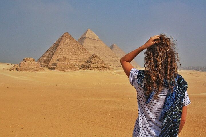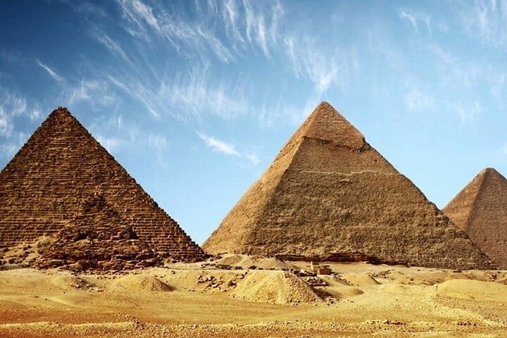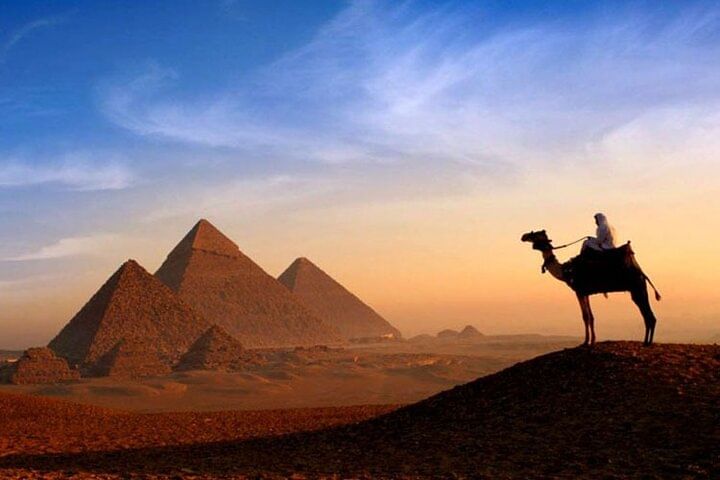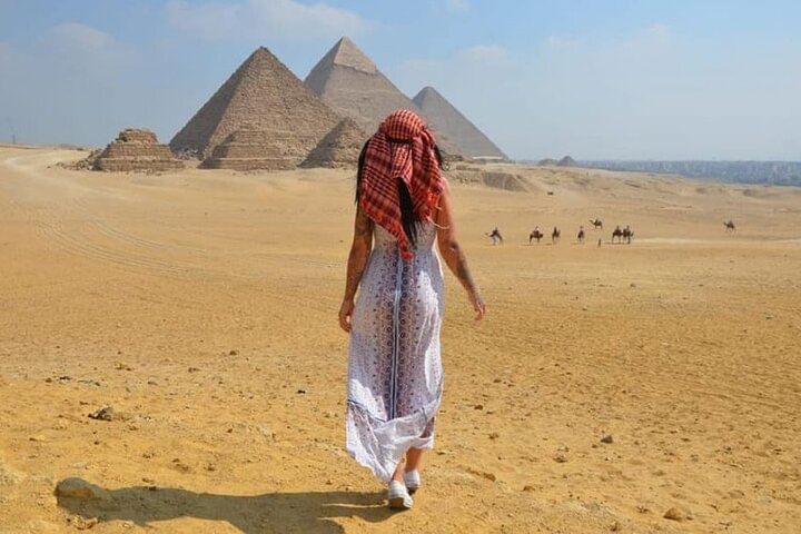 Embark on an 8-hour private tour, led by an expert guide with private transportation. Explore the Pyramids of Giza, unraveling their mysteries and historical significance. Delve into the Egyptian Museum's treasures, from Tutankhamun's relics to ancient artifacts. Experience the vibrant Khan Al-Khalili bazaar, filled with exotic sights and sounds. Enjoy a delicious lunch at a local restaurant, savoring authentic Egyptian cuisine. Book now for an unforgettable journey through Egypt's ancient wonders and cultural heritage.